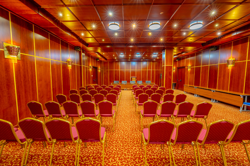 The conference hall is a versatile and modern space designed to accommodate up to 100 attendees. It features high ceilings, lighting, and state-of-the-art audio-visual equipment, ensuring an engaging experience for presentations, workshops, and meetings. Flexible seating arrangements can be tailored to your needs, while high-speed Wi-Fi and on-site support enhance productivity. Whether for corporate events, seminars, or training sessions, this hall provides a professional and comfortable environment for all participants.