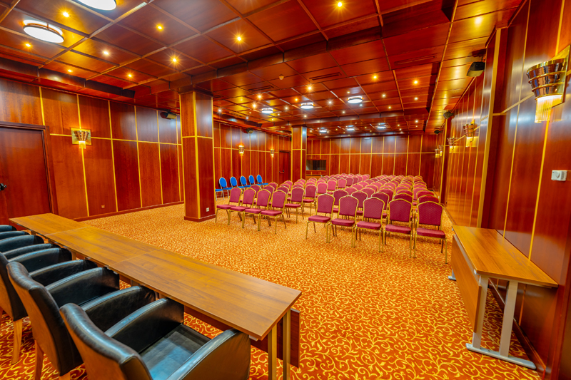 The conference hall is a versatile and modern space designed to accommodate up to 100 attendees. It features high ceilings, lighting, and state-of-the-art audio-visual equipment, ensuring an engaging experience for presentations, workshops, and meetings. Flexible seating arrangements can be tailored to your needs, while high-speed Wi-Fi and on-site support enhance productivity. Whether for corporate events, seminars, or training sessions, this hall provides a professional and comfortable environment for all participants.